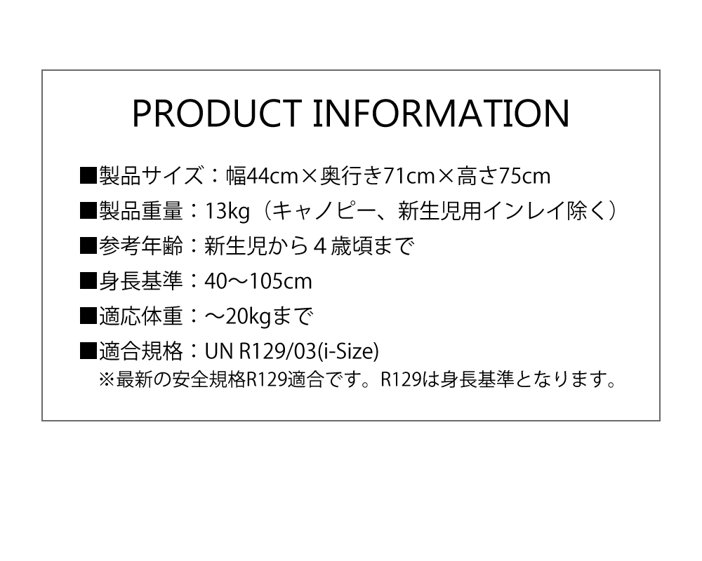 【適合規格】UN R129/03(i-Size)
