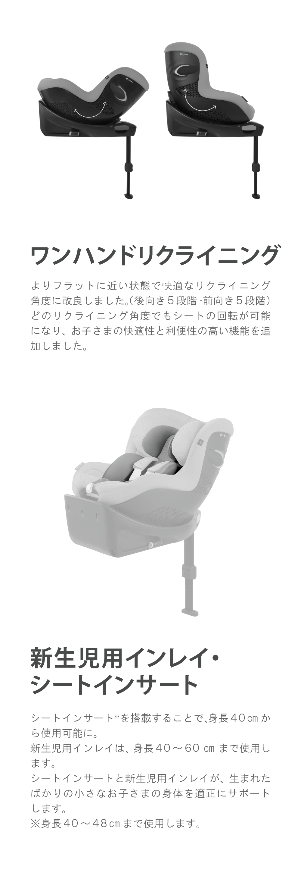 シートインサート*を搭載することで、身長40cmから使用可能に。