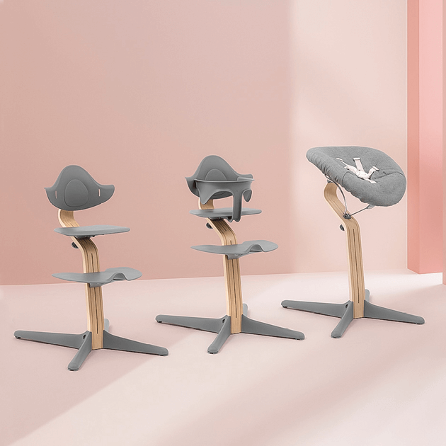 ひとりで座ることが出来るようになったお子さまを、やさしく守る腕のようなストッケ ノミ ベビーセットがあれば、お子さまのアクティブな動きを妨げることなく、安全で快適に座ることができます。ベビーセットは、座面の下と背もたれの2か所に、ワンクリックで簡単に取り付ける事ができます。湾曲したステムが適度な座面の奥行きを自動的に調節することができるため、自由な動きを妨げることのない、快適なハイチェアを生み出しています。お子さまが家族と一緒に食卓を囲んで食事を楽しみ、絆を育むことで幼児期の発達を促します。