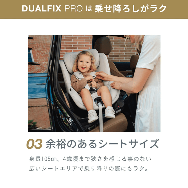 DUALFIX PROは最長で4歳頃、身長105?体重19?まで後ろ向き乗車が可能です。