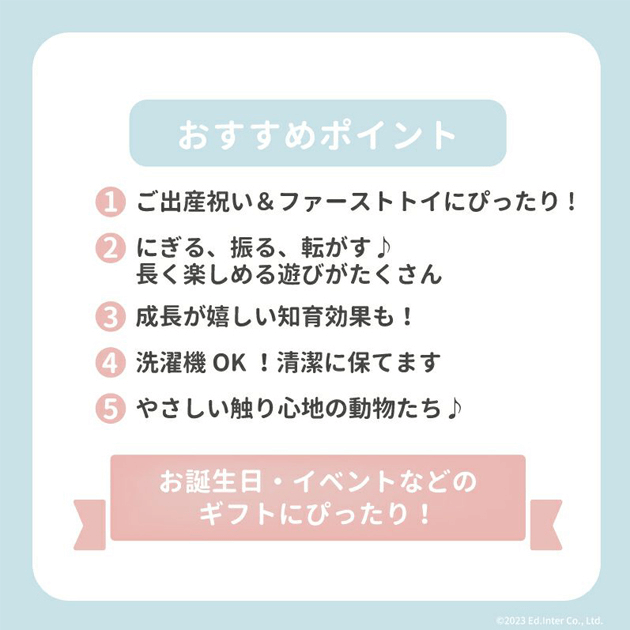 ふわふわと優しい素材と柔らかな色彩の布おもちゃなので、ご出産祝いやファーストトイにぴったりです。