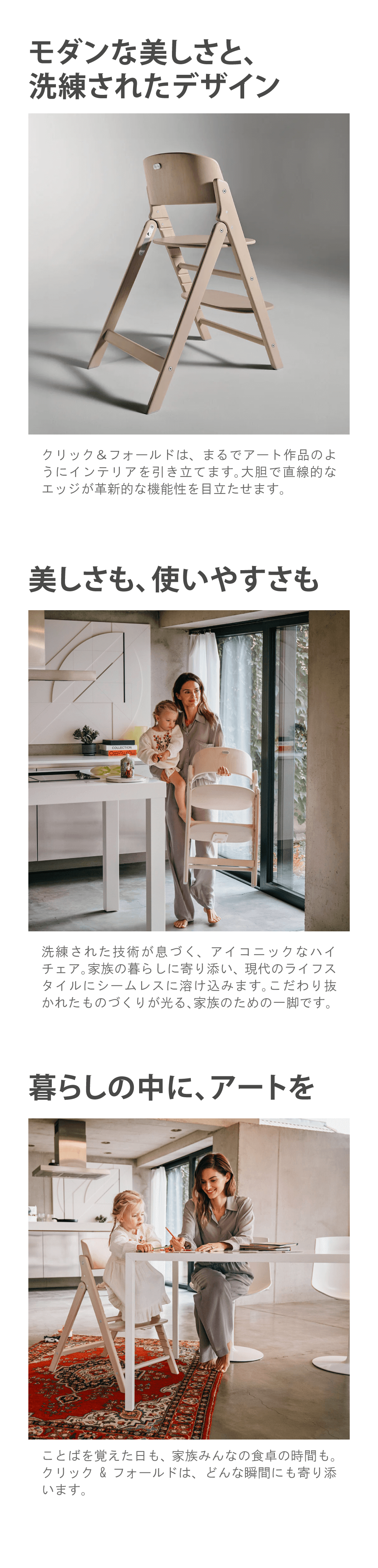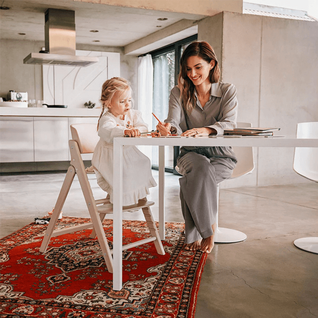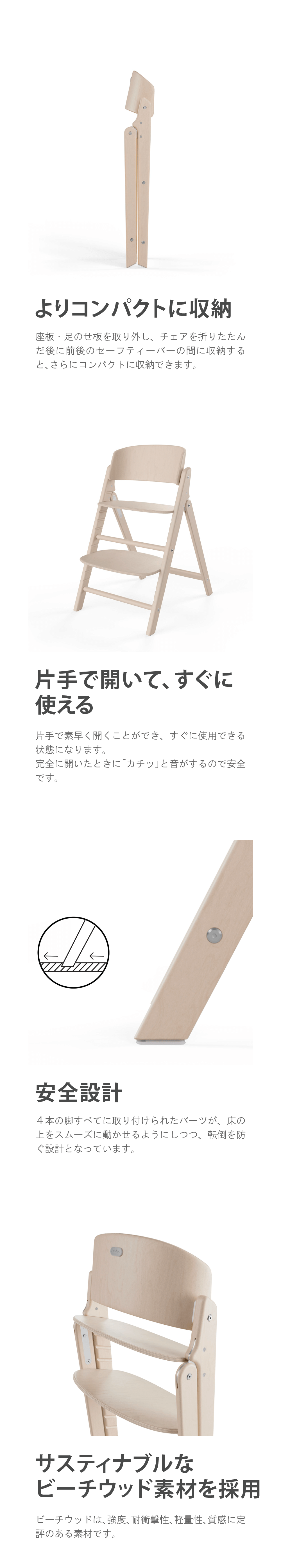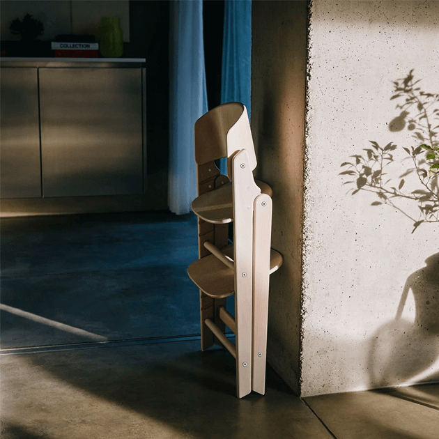 サスティナブルな素材のビーチウッドを使用した、匠の技が生み出すアイコニックなデザインのハイチェア。