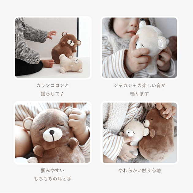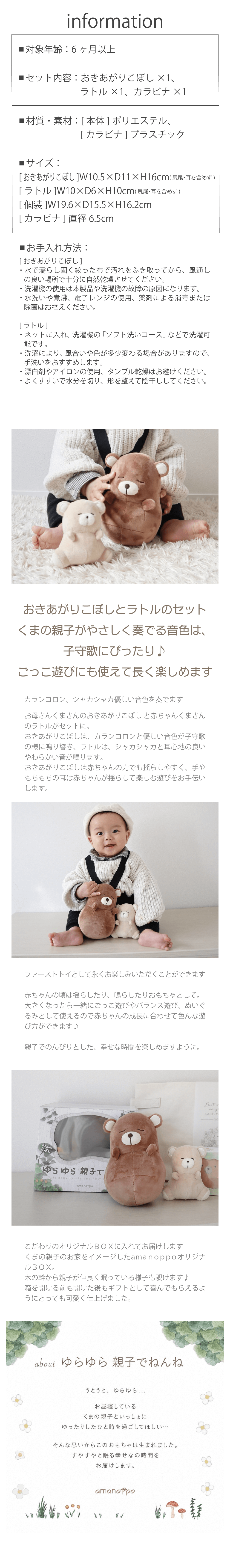 お母さんくまさんのおきあがりこぼしと赤ちゃんくまさんのラトルがセットに。