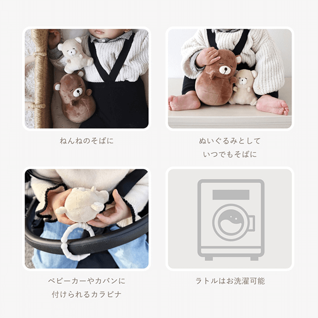 お外へお出かけする時は赤ちゃんくまさんのラトルと一緒に。