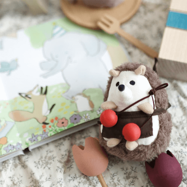 はりねずみくんのぬいぐるみは大人の手のひらサイズだから、ちいさなお子さまのはじめてのおともだちにも。