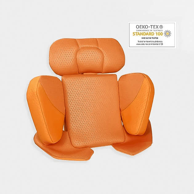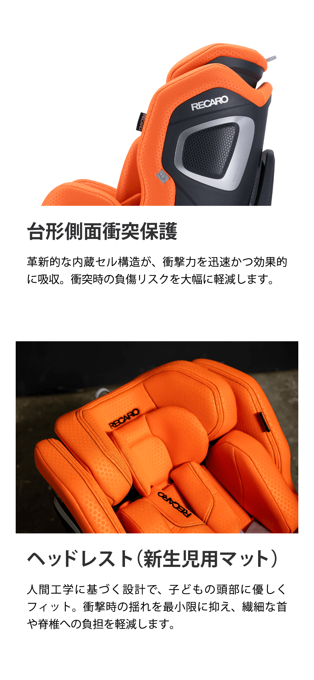 人間工学に基づく設計で、子どもの頭部に優しくフィット。衝撃時の揺れを最小限に抑え、繊細な首や脊椎への負担を軽減します。