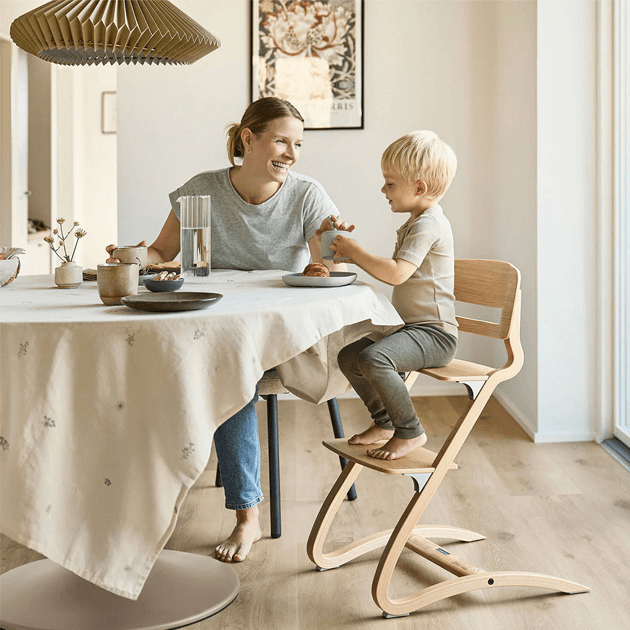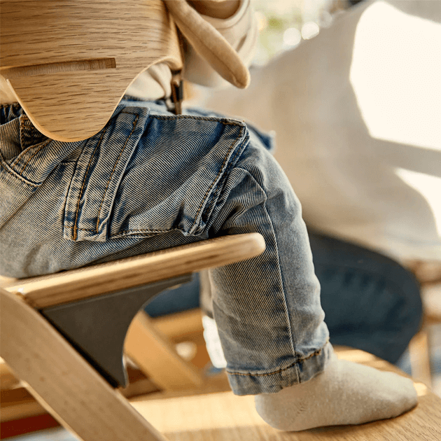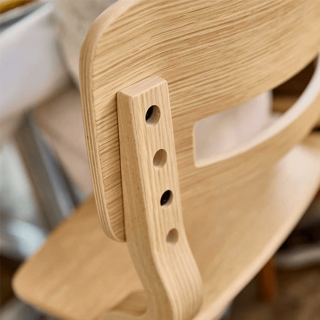「座る」と「動く」の両方を考えた椅子、それがリエンダー社のハイチェアなのです。背もたれと座面、足置き板の高さを、細かいピッチで調整することができるので日々成長していくお子さまへ、ずっと快適な座り心地をお約束します。
