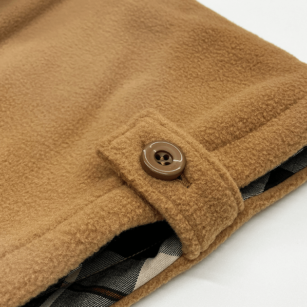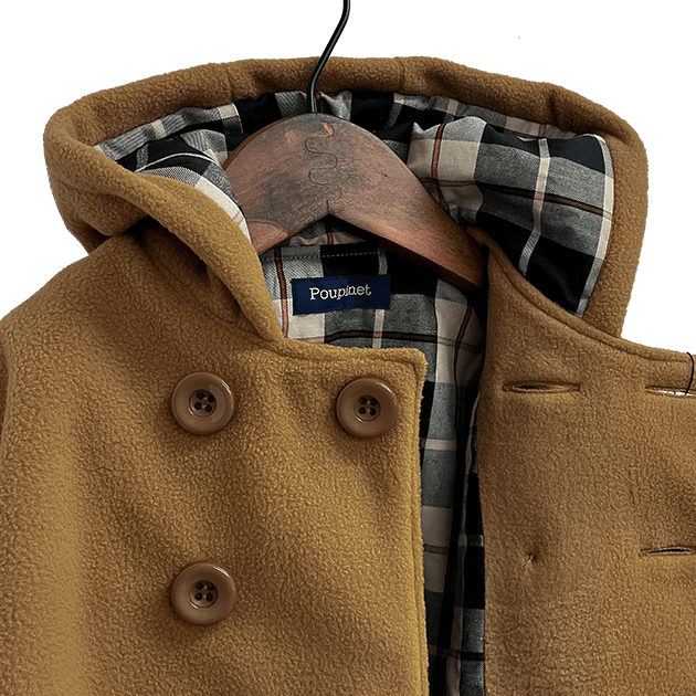 防寒・防風性に優れたフードから見えるチェック柄の裏地がポイントです。