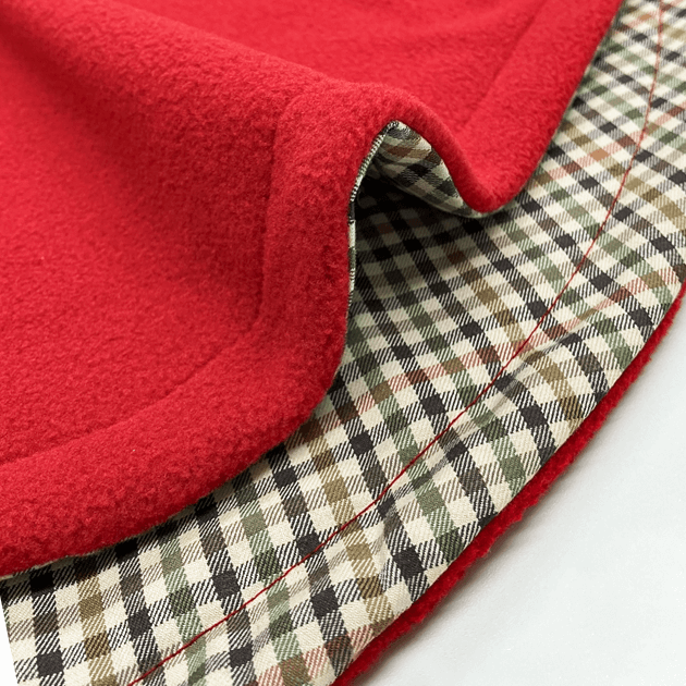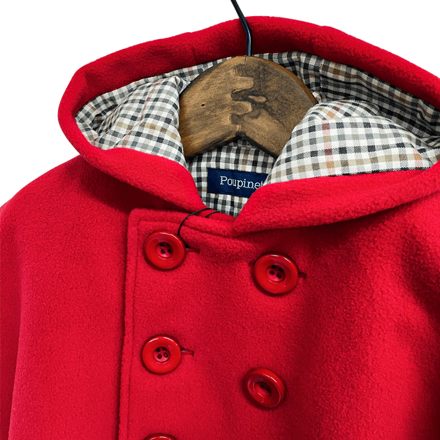 防寒・防風性に優れたフードから見えるチェック柄の裏地がポイントです。