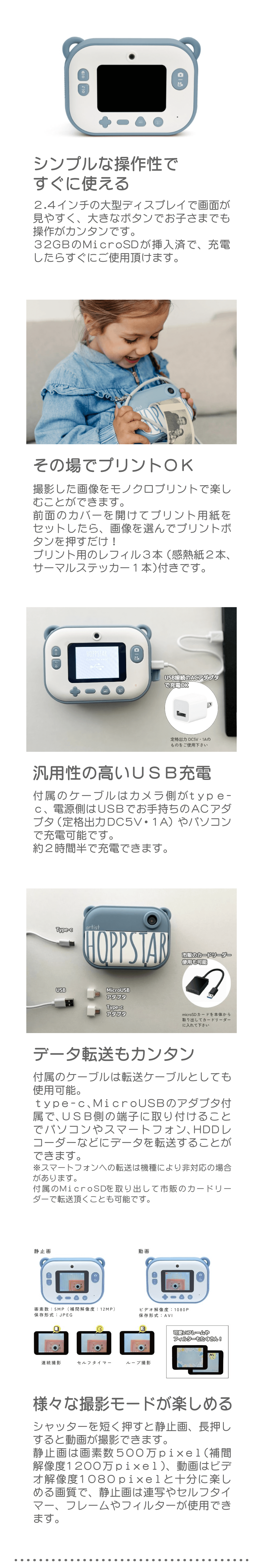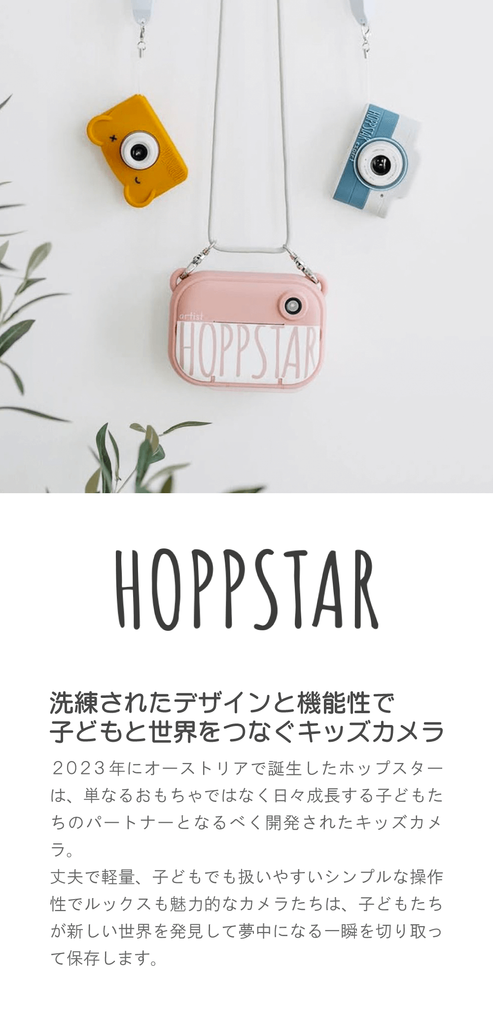 ホップスターはオーストリア生まれのキッズカメラ。丈夫で軽量、シンプルな操作性で子どもの初めてのカメラにぴったりです。