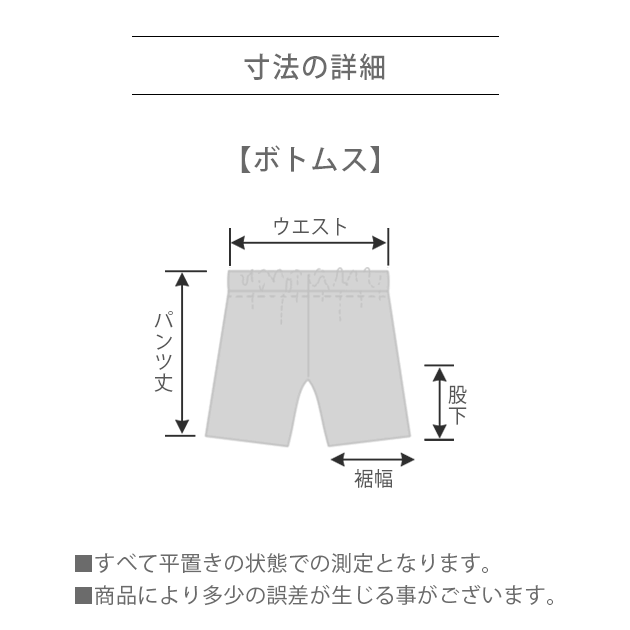下 ウエスト 18cm / 股下 21cm / 裾幅 19cm / パンツ丈 42cm