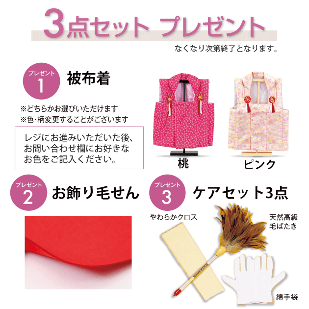 ひな人形をご購入のお客様に、ケアセットなど3点セットプレゼント!