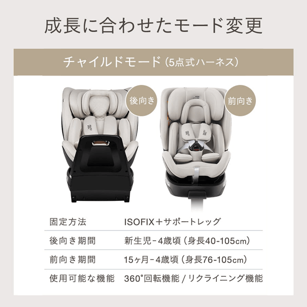 ●身長40~105cm(ISOFIX+サポートレッグ)