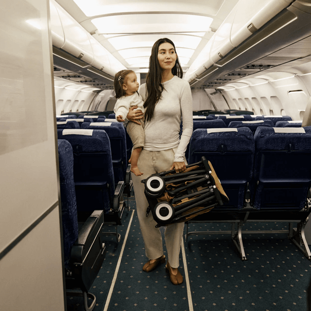 飛行機では機内持ち込み※ができるので、搭乗直前まで使えます。車では座席の足元におさまり、新幹線や電車では頭上の荷物棚に置くこともできます。 ※事前に航空会社へお問い合わせください。