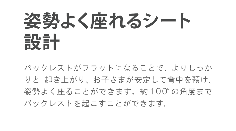 約100度の角度まで起こすことができるバックレスト