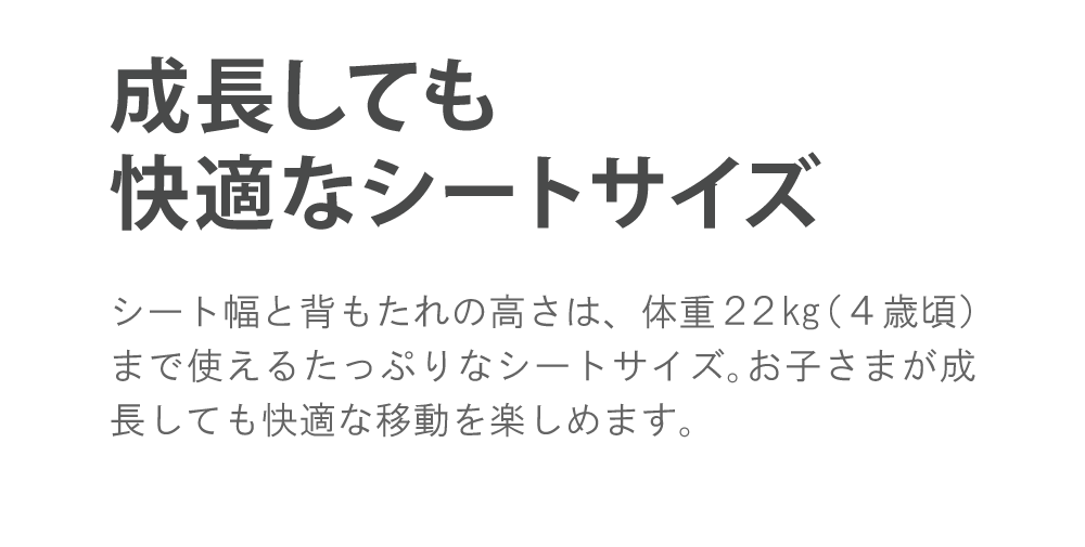 シートは約4歳まで使えるゆったりサイズ