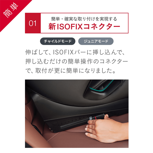 最新のi-Size規格(UN R129)に準拠して開発・承認されており、高度な安全機能を備えています。