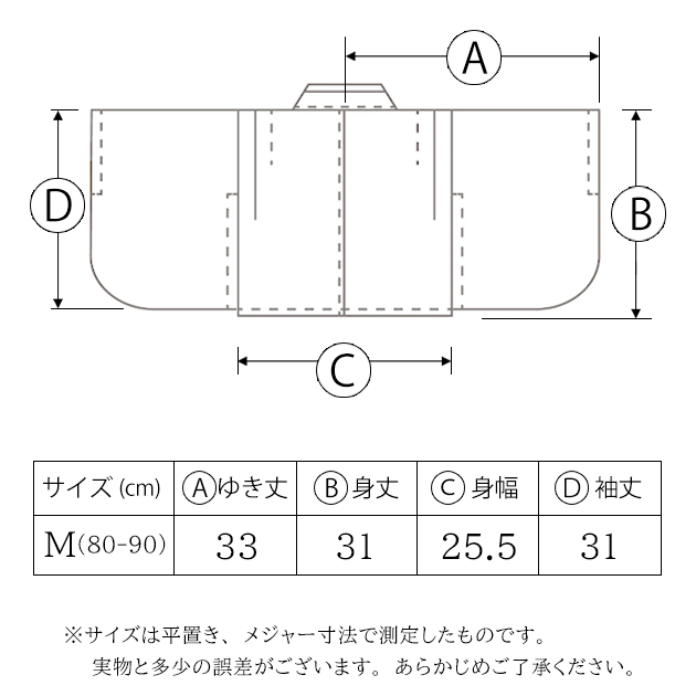 ・羽織 身丈31、身幅25.5、ゆき丈33、袖丈31(㎝)