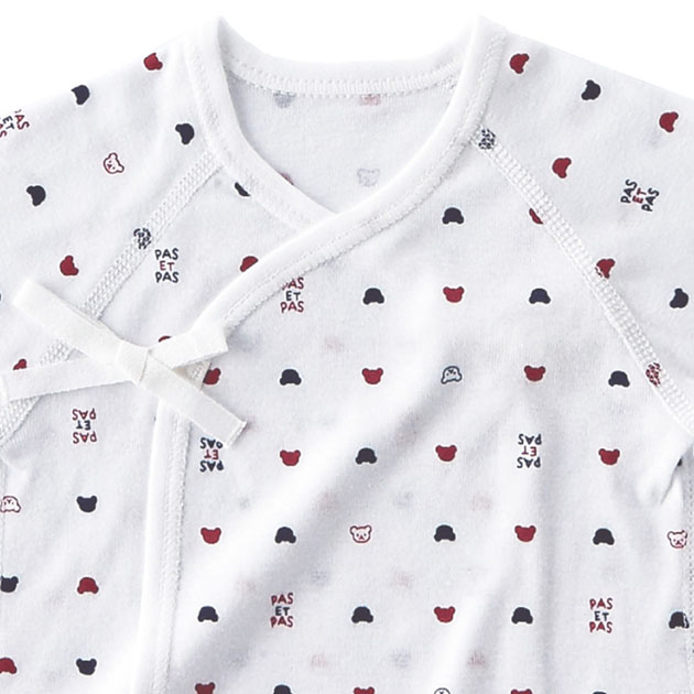 デリケートな赤ちゃんの肌に刺激を与えないように縫い目は平面縫製を採用。 型くずれしにくい衿のパイピングやほつれないひも先など、ベビー用品専門メーカのこだわりが詰まった肌着です。