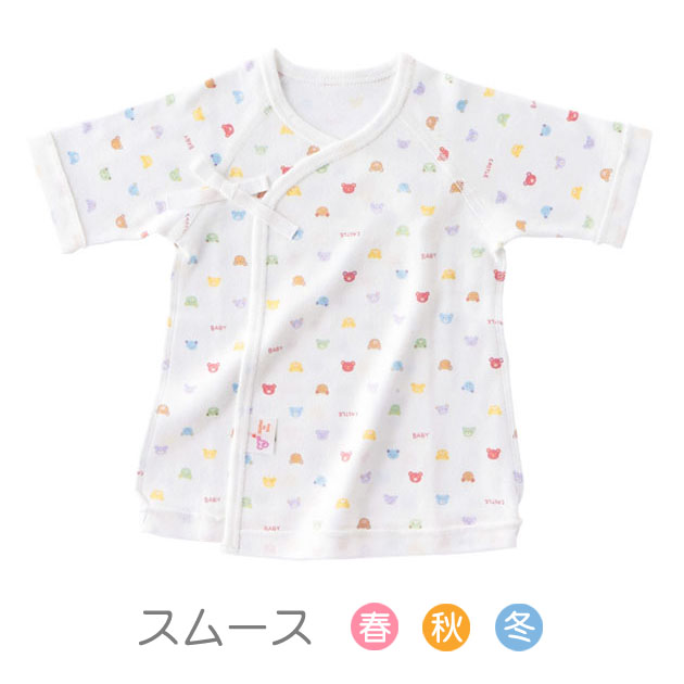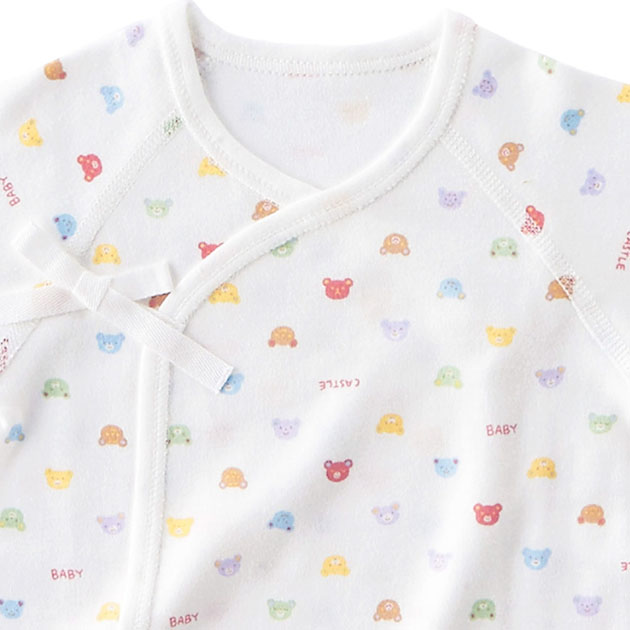 デリケートな赤ちゃんの肌に刺激を与えないように縫い目は平面縫製を採用。 型くずれしにくい衿のパイピングやほつれないひも先など、ベビー用品専門メーカのこだわりが詰まった肌着です。