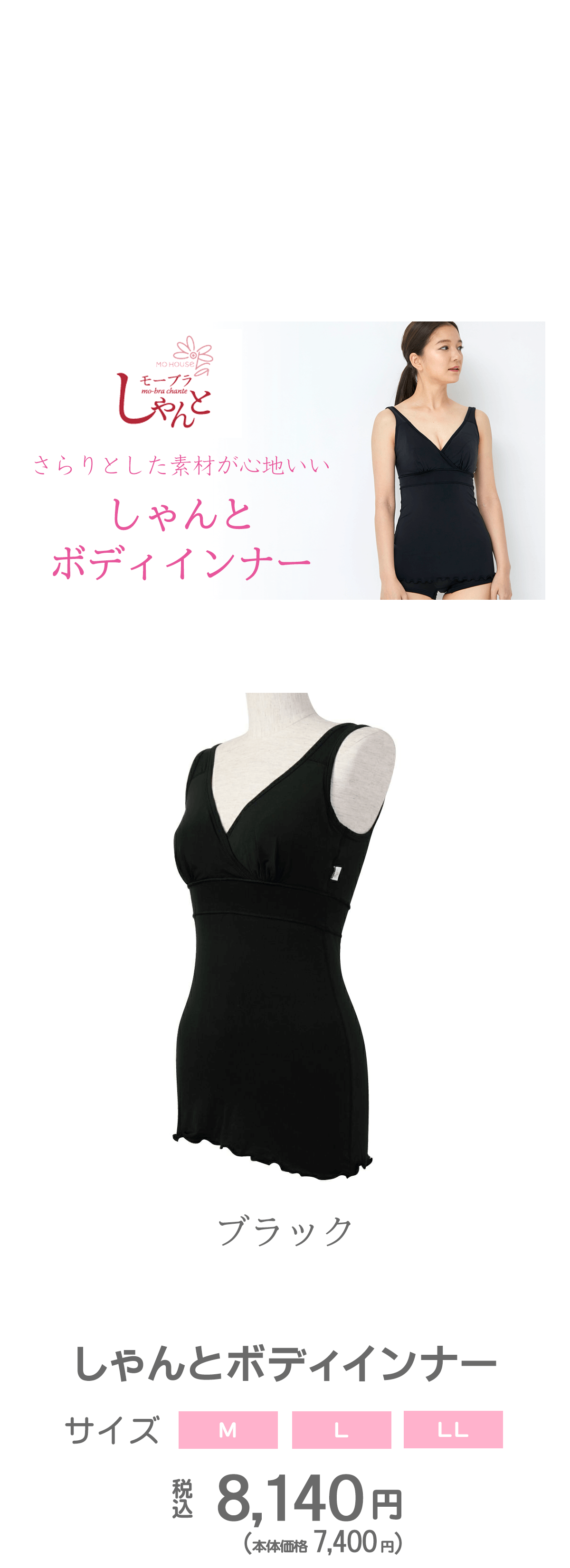 モーハウスブラの使いやすさはそのままに、 フィット感の高い素材を使用したブラ付きキャミソールです。 すっぽり隠れるため、お腹や腰の冷えが気になる方におすすめ。 インナーを重ね着する必要がないため、もたつかず快適です。