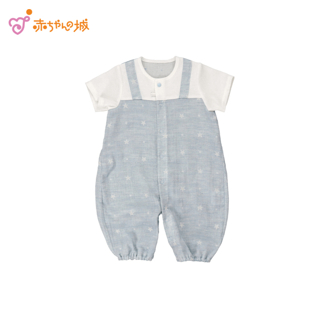 赤ちゃんの城 半袖ツーウェイオール 星柄ガーゼ 日本製 春夏 4331 【新生児ウェア】