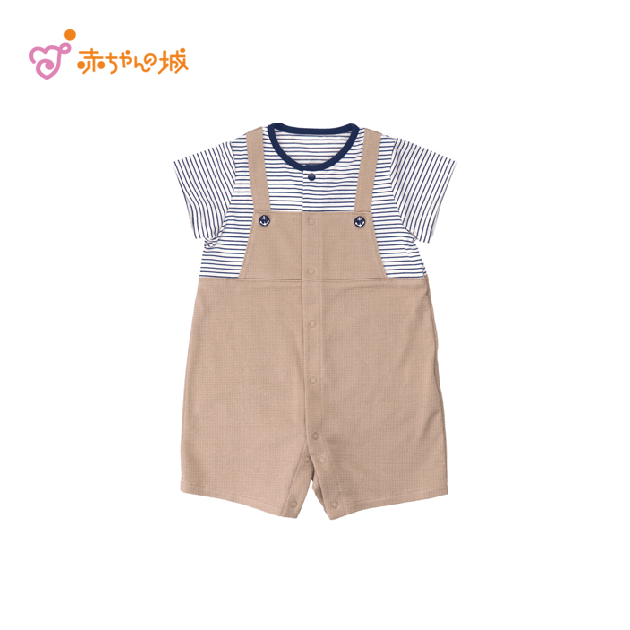 赤ちゃんの城 半袖コンビ Nサロペットボーダー 70cm・80㎝ 日本製 5335 【新生児ウェア】